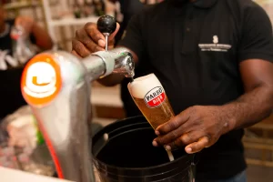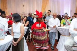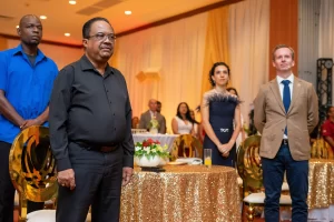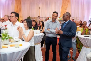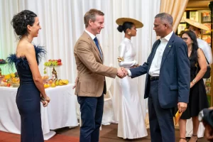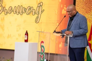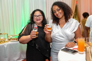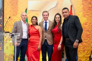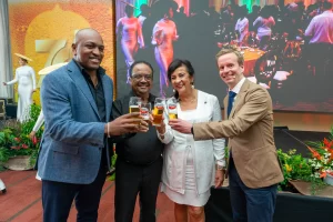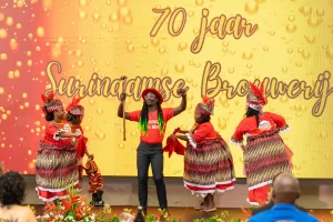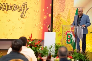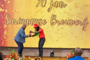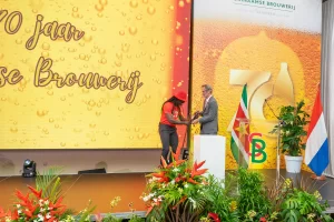 Surinaamse wortels en de ambitieuze blik op de toekomst: “duurzaamheid is geen keuze, maar een kernverantwoordelijkheid.” Tot de gastsprekers behoorden de Ambassadeur van het Koninkrijk der Nederlanden, Walter Oostelbos, Minister van Buitenlandse Zaken Melvin Bouva, en als eregast Vicepresident Gregory Rusland, die in zijn speech de langdurige bijdrage van de brouwerij aan de economie en het nationaal imago van Suriname onderstreepte. De avond eindigde met een toast en een djogo.