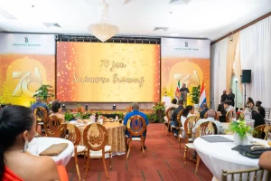 PARAMARIBO, 28 oktober 2025 – De Surinaamse Brouwerij vierde haar 70-jarig bestaan met een feestelijke receptie in de ballroom van Torarica, waar prominente vertegenwoordigers uit de