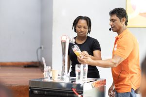 De open dag werd geopend door Gijs van der Loo, Managing Director van Surinaamse Brouwerij. In zijn presentatie benadrukte hij het belang van investeren in jongeren als fundament voor duurzame maatschappelijke ontwikkeling.